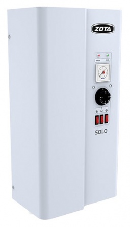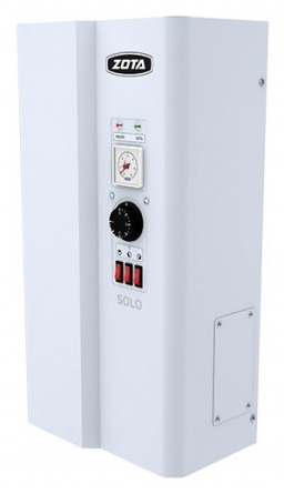 Котел электрический Zota Solo 4,5 - котел, идеально подходящий для установки в качестве резерва для небольших помещений. Преимущества блоки ТЭН с пониженной ваттной нагрузкой из нержавеющей стали; котлы рассчитаны на применение незамерзающих теплоносителей; корпус в теплоизоляции; удобен для сервисного обслуживания; три ступени мощности для эффективного расходования электроэнергии; силовой блок работает бесшумно за счет применения электромагнитных реле в коммутирующей схеме; регулировка температуры нагрева воды до 90С; рабочее давление 3 атмосферы; присоединительные размеры патрубков 3/4''.